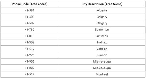 canada phone code list