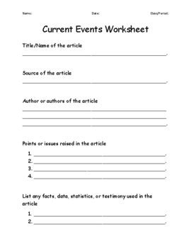 high school current events worksheet