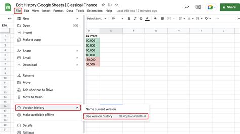 how to check version history on google sheets